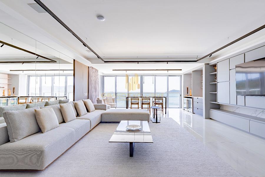 Amplo living integrado com vista total para o mar